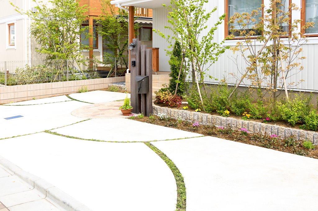 オープン外構ほどは開放せず、バランスよく目隠しをすることで両者の良い部分を合わせたようなスタイルです。